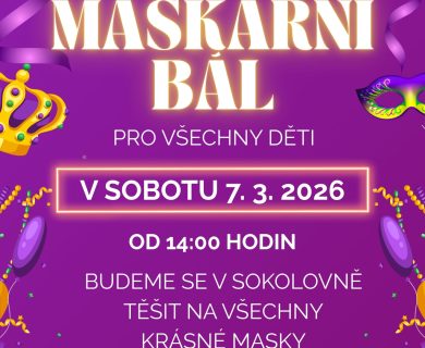 První březnovou sobotu, tedy 7. 3. 2026 bude sokolovna patřit všem pohádkovým postavám, superhrdinům, zvířátkům…