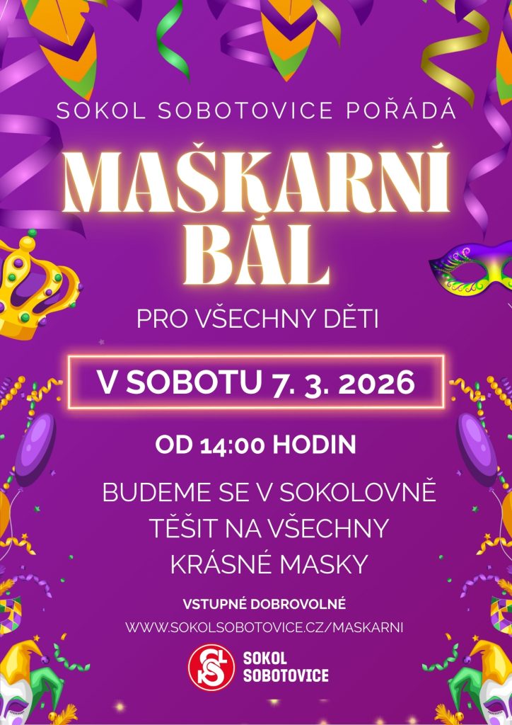 První březnovou sobotu, tedy 7. 3. 2026 bude sokolovna patřit všem pohádkovým postavám, superhrdinům, zvířátkům a dalším úžasným maskám, na které se budeme na našem karnevalu pro děti těšit od 14:00. Zejména se na děti bude těšit náš oblíbený klaun, který nesmí chybět a pro děti má v rukávu připraven zábavný pestrý program, nabitý aktivitami.