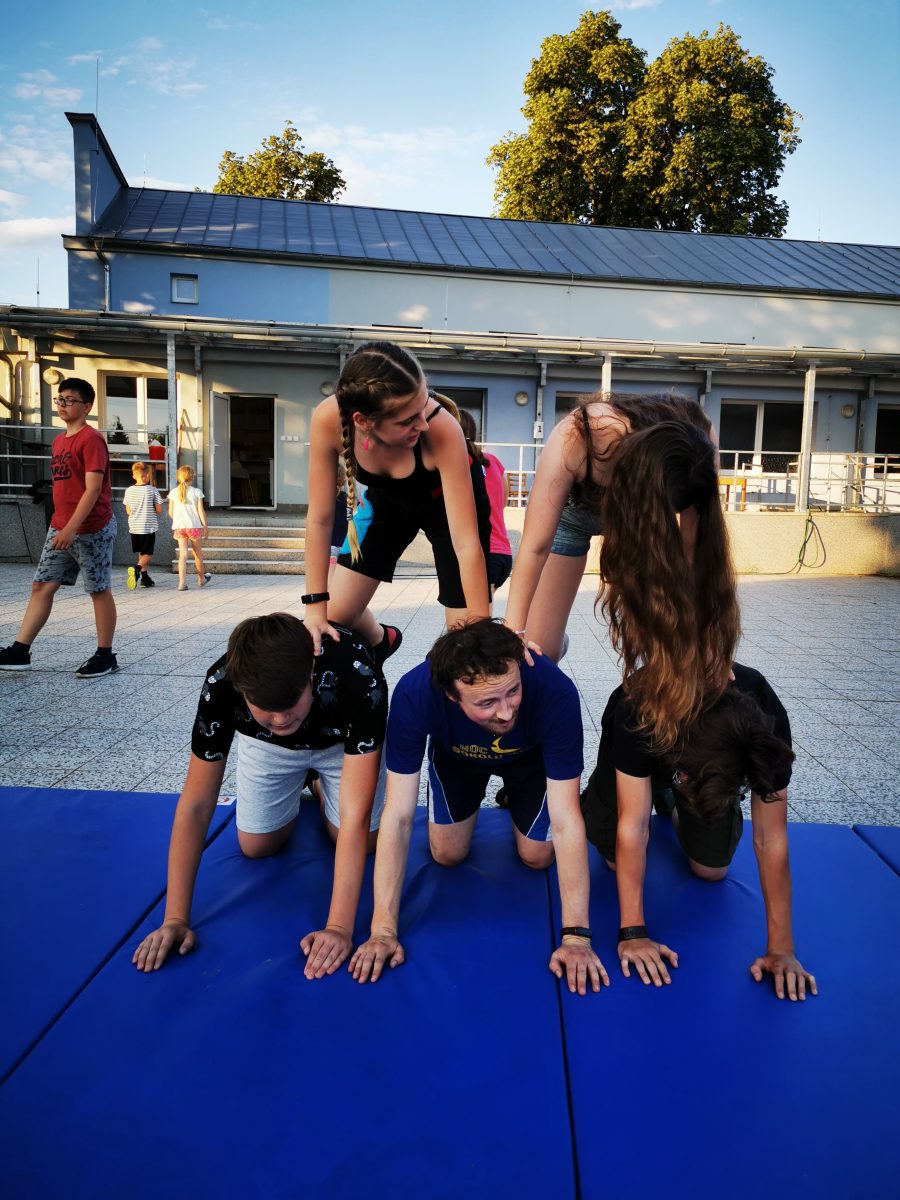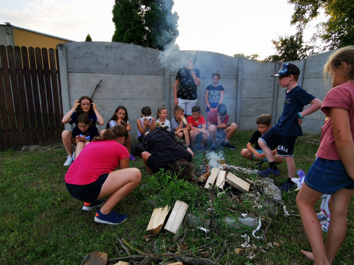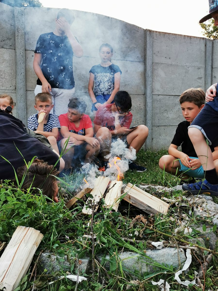 Mezi tím, pokud nás nezaskočí počasí, vybudujeme na trávníku vedle stanové městečko. Ti, kteří budou chtít na sokolovně přespat, tak si přinesou stan, případně se domluví mezi sebou ve skupinkách. Ve stanovém městečku si pak najdou místo a tam si stan postaví, nebo nás poprosí o pomoc. Dohasnutím táborového ohně nám začne večerka.